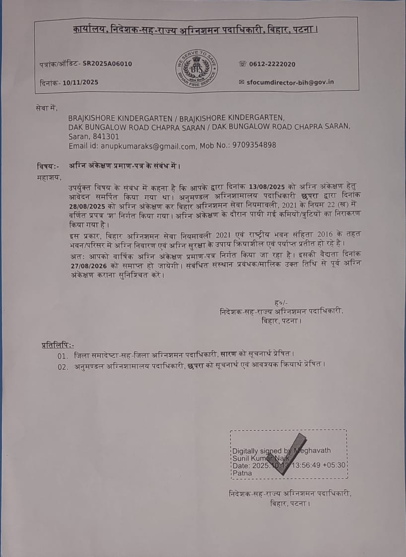 | 6. | SCHOOL EMAIL ID | bkkgchapra@gmail.com |